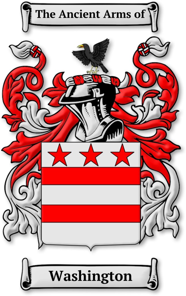 We need a symbol to stand behind, and the ancient Washington coat of arms, the root of our Stars and Stripes, is it. Here’s what it’s about: